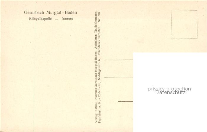 73369163 Gernsbach Klingelkapelle innen postalisch nicht gelaufen Erhaltung siehe scans [KathaD81] KatCode: 11110008216017