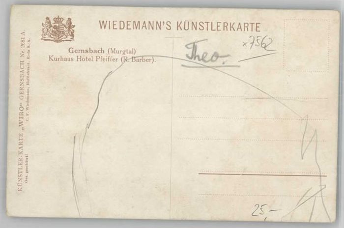 40227735 Gernsbach Künstlerkarte Hotel Pfeiffer KatCode 11110008216017