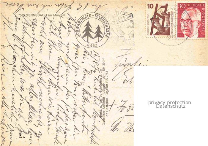 74085189 alte Postkarte Gernsbach Murgtal BW Fliegeraufnahme postalisch gelaufen Erhaltung siehe scans [WerneD78] KatCode: 11110008216017