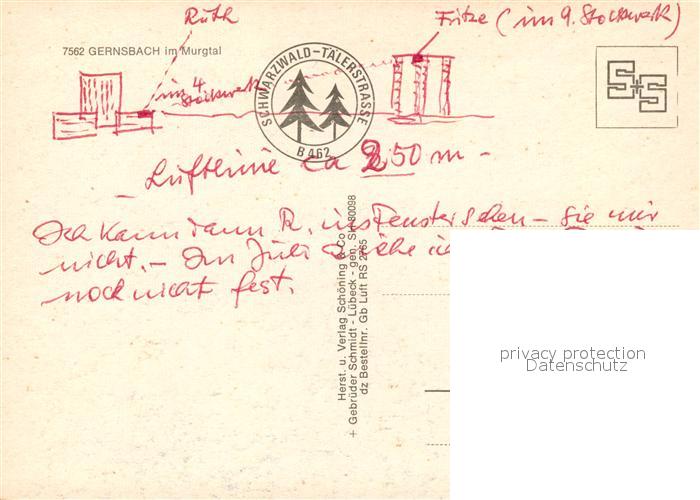 73081140 Gernsbach Murgtal Schwarwald Fliegeraufnahme postalisch nicht gelaufen Erhaltung siehe scans [FriedD77] KatCode: 11110008216017