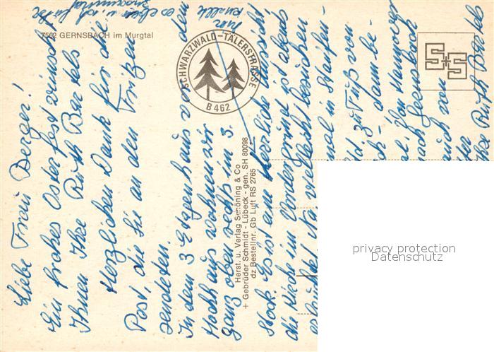 73127353 Gernsbach Murgtal Schwarzwald Fliegeraufnahme postalisch nicht gelaufen Erhaltung siehe scans [FriedD77] KatCode: 11110008216017