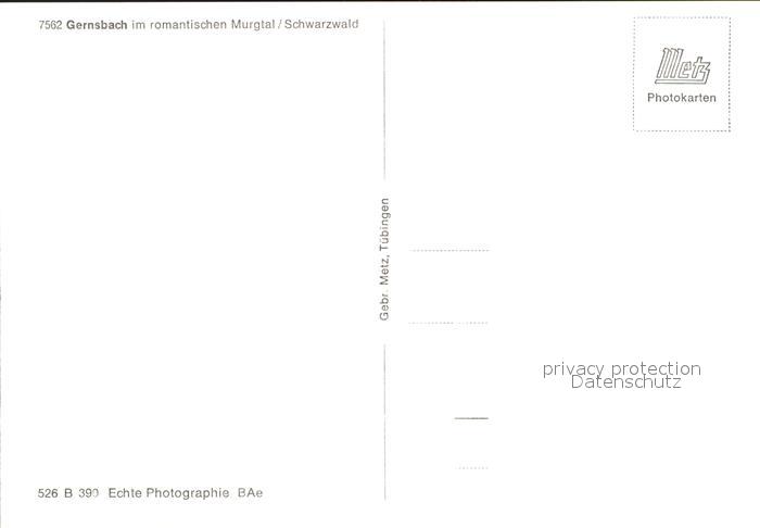 41775682 Gernsbach Ortsansicht postalisch nicht gelaufen Erhaltung siehe scans KatCode: 11110008216017