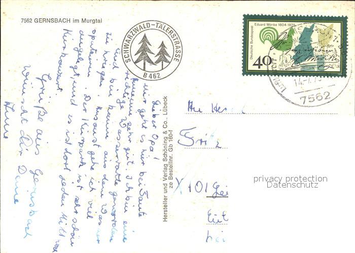 72543644 alte Postkarte Gernsbach Panorama postalisch gelaufen Erhaltung siehe scans [WerneD78 kv016box] KatCode: 11110008216017