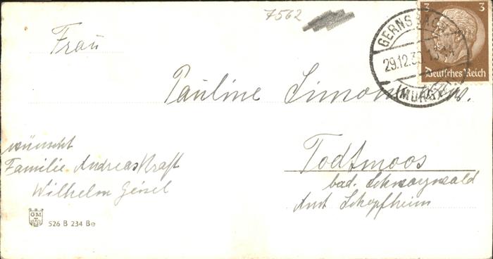71361783 alte Postkarte Gernsbach Panorama postalisch gelaufen gute Erhaltung KatCode: 11110008216017
