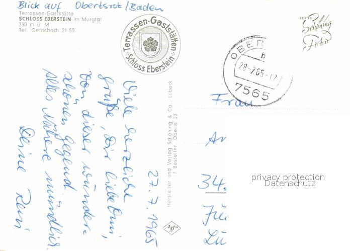 72788058 alte Postkarte Gernsbach Panorama Murgtal Schloss Eberstein postalisch gelaufen Erhaltung siehe scans [FriedD77] KatCode: 11110008216017