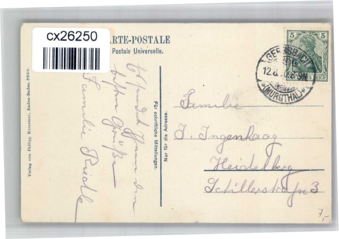 30838332 alte Postkarte Gernsbach von Westen postalisch gelaufen KatCode: 11110008216017