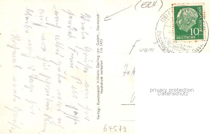 73603386 alte Postkarte Gernsheim Kirchen Oberer Hafen Handelshafen Peter Schoeffer Denkmal Stadthaus postalisch gelaufen Erhaltung siehe scans [KathaD81] KatCode: 11110006433004