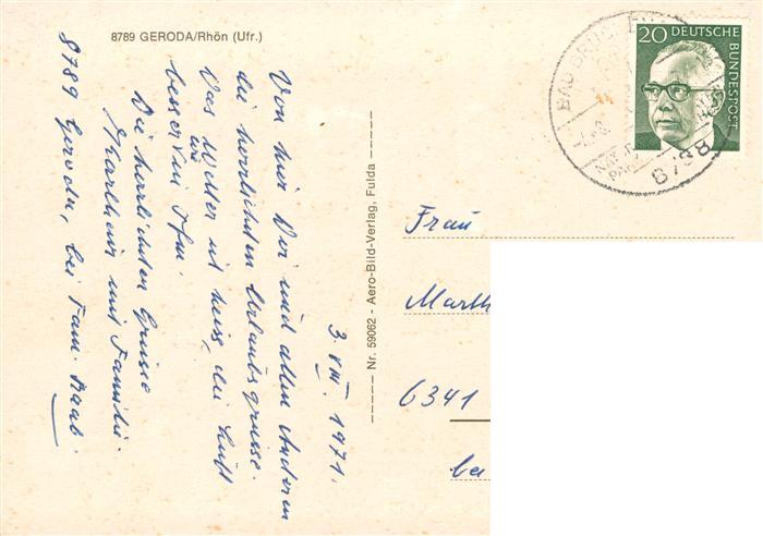 73900367 alte Postkarte Geroda Rhoen Unterfranken Bayern Panorama postalisch gelaufen Erhaltung siehe scans [FriedD77] KatCode: 11110009672126