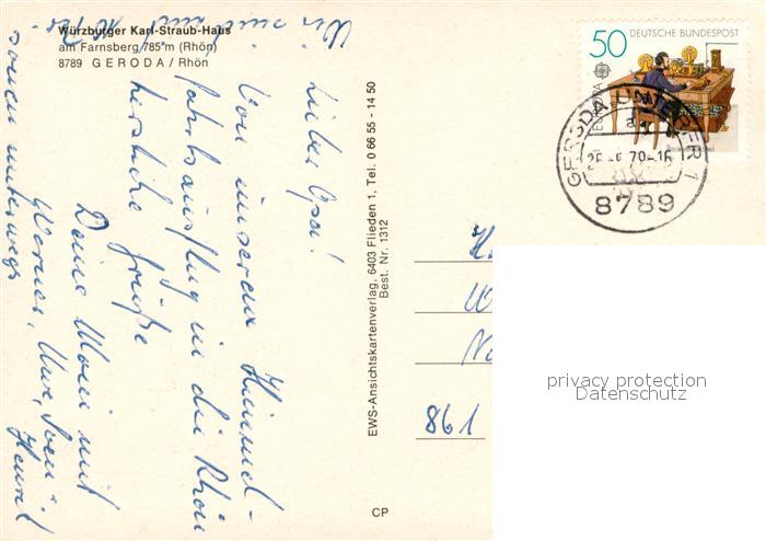 73719640 alte Postkarte Geroda Wuerzburger Karl Straub Haus am Farnsberg postalisch gelaufen Erhaltung siehe scans [WerneD78] KatCode: 11110009672126