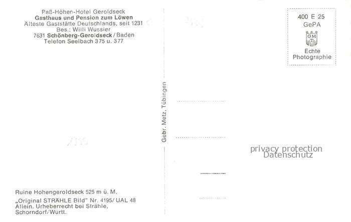 74063246 Geroldseck Ruine Lahr Baden BW Ruine Hohen Geroldseck Gasthaus Pension zum Loewen Fliegeraufnahme postalisch nicht gelaufen Erhaltung siehe scans [WerneD78] KatCode: 11110008317065