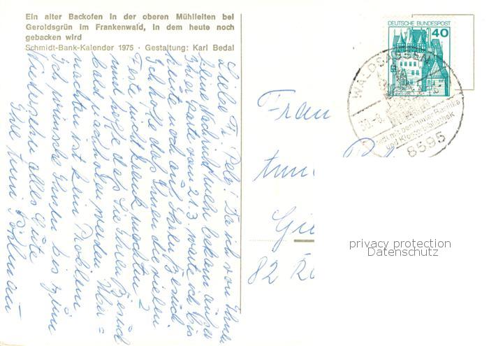 73780326 alte Postkarte Geroldsgruen Alter Backofen in der oberen Muehlleiten Kuenstlerkarte postalisch gelaufen Erhaltung siehe scans [FriedD77] KatCode: 11110009475128