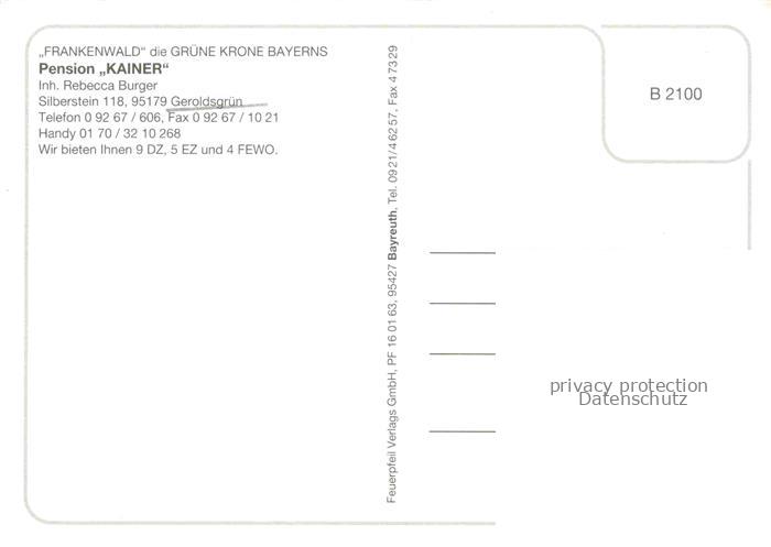 74110927 Geroldsgruen HOF Bayern Pension Kainer postalisch nicht gelaufen Erhaltung siehe scans [WerneD78] KatCode: 11110009475128