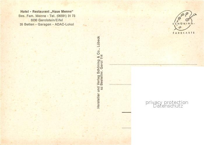 73479099 Gerolstein Hotel Restaurant Haus Menne postalisch nicht gelaufen Erhaltung siehe scans [FriedD77] KatCode: 11110007233026