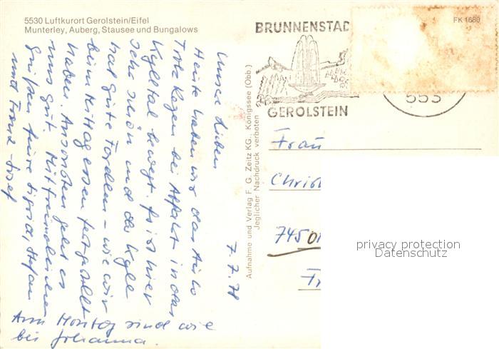 73179351 alte Postkarte Gerolstein Panorama Munterley Auberg Stausee Bungalows postalisch gelaufen Erhaltung siehe scans [KathaD81] KatCode: 11110007233026