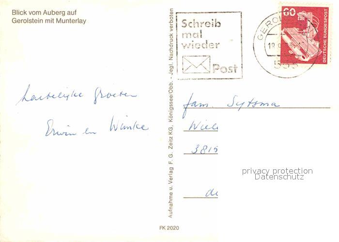 72655055 alte Postkarte Gerolstein Rheinland-Pfalz Blick vom Auberg mit Munterlay postalisch gelaufen Erhaltung siehe scans [LiesaD40] KatCode: 11110007233026