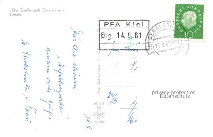74080027 Gerolstein Rheinland-Pfalz Panorama Die Quellenstadt postalisch gelaufen Fliegeraufnahme Erhaltung siehe scans [FriedD77] Fliegeraufnahme alte Postkarte Frie Katcode 11110007233026