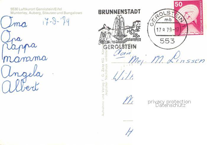 72742285 alte Postkarte Gerolstein Rheinland-Pfalz Panorama Muntere Amberg Stausee und Bungalows postalisch gelaufen Erhaltung siehe scans [FriedD77] KatCode: 11110007233026