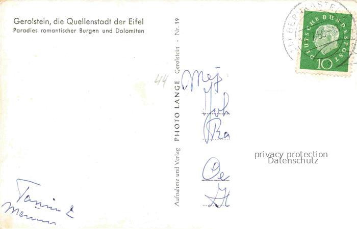 74099294 Gerolstein Rheinland-Pfalz Panorama Quellenstadt der Eifel Burgen und Dolomiten postalisch gelaufen Erhaltung siehe scans [FriedD77] alte Postkarte Frie Katcode 11110007233026