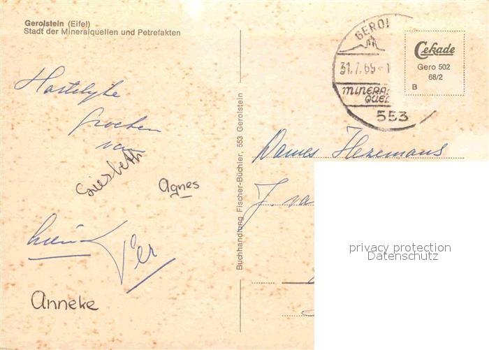 72662865 alte Postkarte Gerolstein Rheinland-Pfalz Panorama Stadt der Mineralquellen und Petrefakten in der Eifel postalisch gelaufen Erhaltung siehe scans [FriedD77] KatCode: 11110007233026