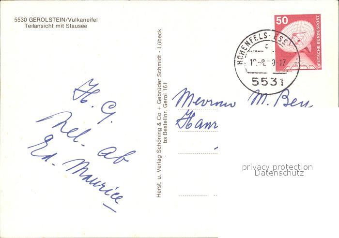 72493444 alte Postkarte Gerolstein Rheinland-Pfalz Teilansicht mit Stausee postalisch gelaufen Erhaltung siehe scans KatCode: 11110007233026