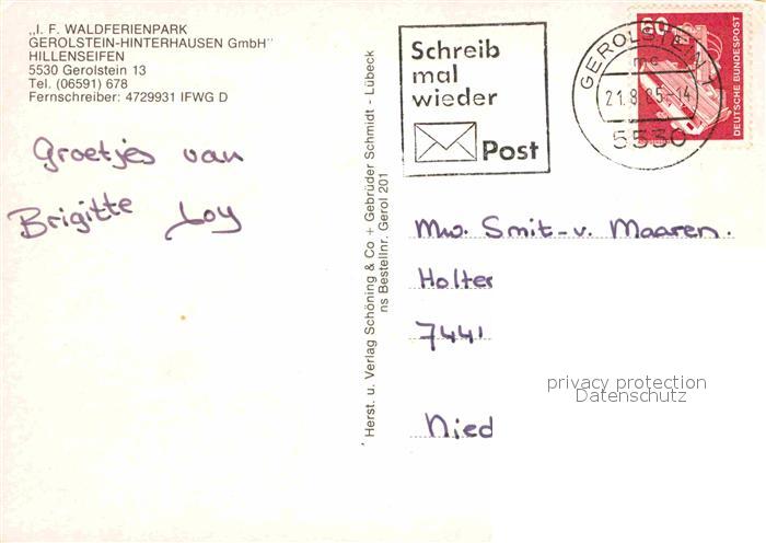 72852984 alte Postkarte Gerolstein Rheinland-Pfalz Waldferienpark Gerolstein-Hinterhausen postalisch gelaufen Erhaltung siehe scans [NatalD47] KatCode: 11110007233026
