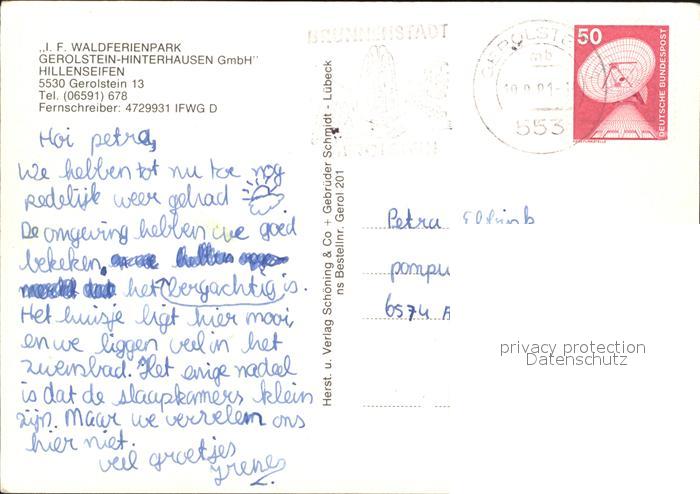 72469970 alte Postkarte Gerolstein Rheinland-Pfalz Waldferienpark Hinterhausen postalisch gelaufen Erhaltung siehe scans KatCode: 11110007233026