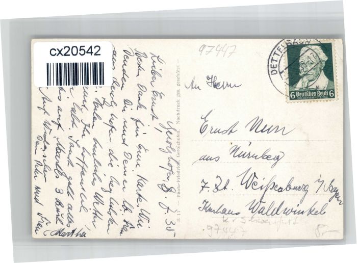 30739812 alte Postkarte Gerolzhofen Krankenhaus Kirche Kinderbewahranstalt Zehntspeicher Flankierungsturm postalisch gelaufen KatCode: 11110009678134