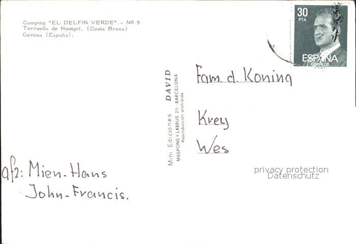 old postcard Gerona Camping El Delfin Verde postalisch gelaufen Erhaltung siehe scans