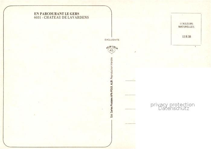 13545772 Gers Chateau de Lavardens postalisch nicht gelaufen Erhaltung siehe scans [WerneD78] KatCode: 11170032132013