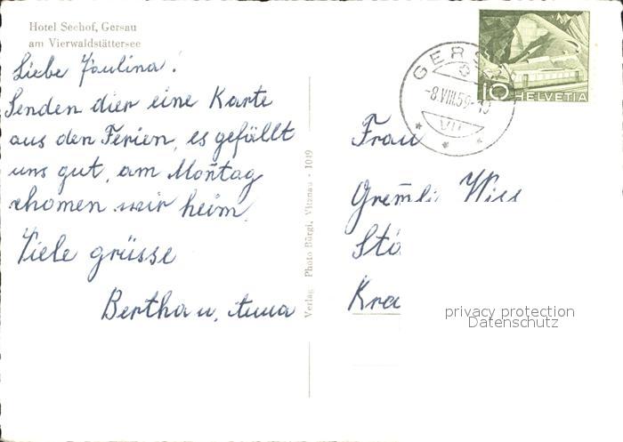 12031779 alte Postkarte Gersau Vierwaldstaettersee Hotel Seehof Vierwaldstaettersee postalisch gelaufen KatCode: 11470170480434