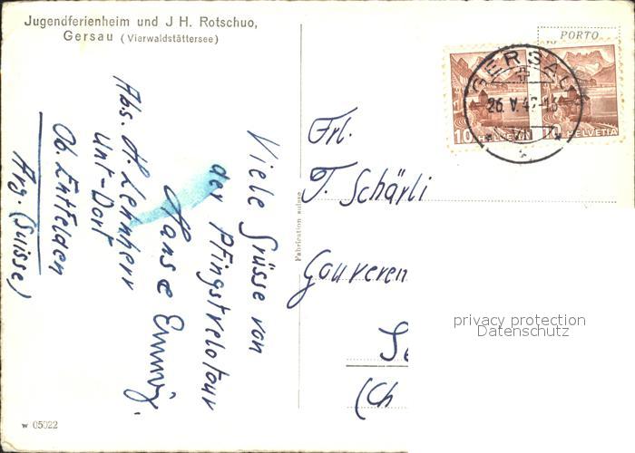 12031755 alte Postkarte Gersau Vierwaldstaettersee Jugendferienheim und JH Rotschuo Vierwaldstaettersee postalisch gelaufen Erhaltung siehe scans KatCode: 11470170480434