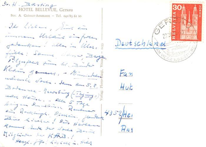 13886092 alte Postkarte Gersau Vierwaldstaettersee SZ Hotel Bellevue postalisch gelaufen Erhaltung siehe scans [FriedD77] KatCode: 11470170480434
