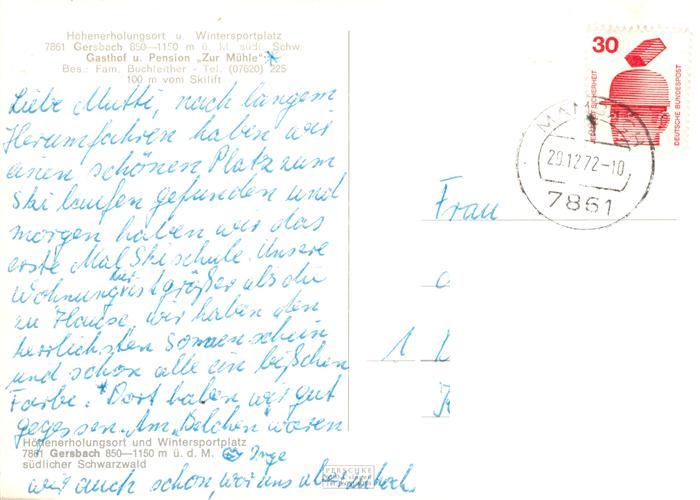 73928602 alte Postkarte Gersbach Schopfheim Gasthof Pension Zur Muehle postalisch gelaufen Erhaltung siehe scans [WerneD78] KatCode: 11110008336081