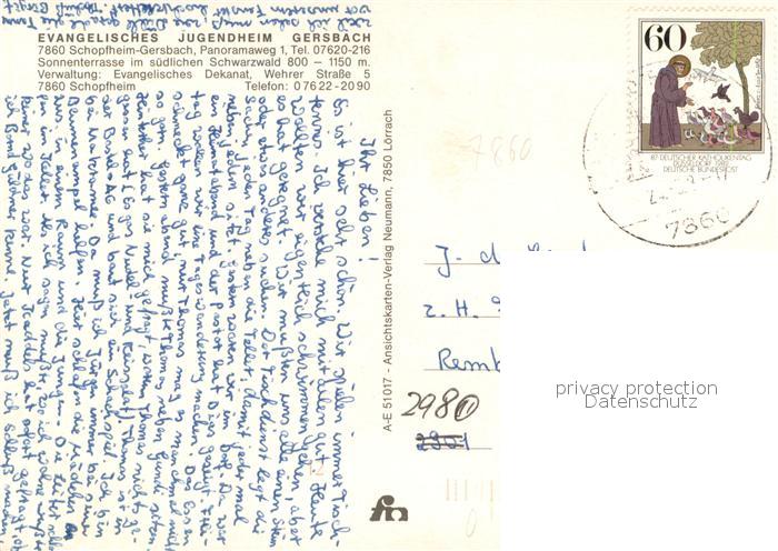 73705010 alte Postkarte Gersbach Schopfheim Panorama Ev Jugendheim Speisesaal Bettenzimmer postalisch gelaufen Erhaltung siehe scans [WerneD78] KatCode: 11110008336081