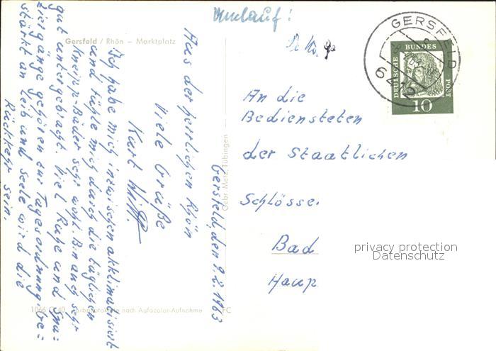 alte Postkarte Gersfeld Rhoen Marktplatz postalisch gelaufen Erhaltung siehe scans