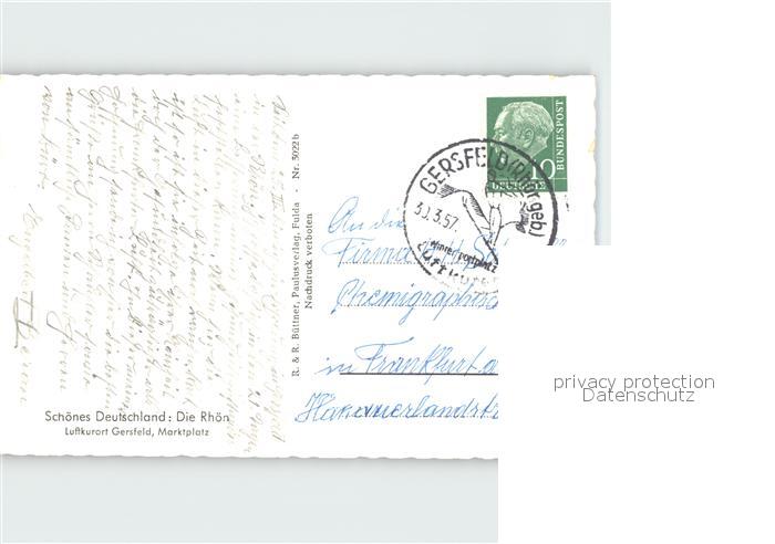 32184603 alte Postkarte Gersfeld Rhoen Marktplatz postalisch gelaufen Erhaltung siehe scans KatCode: 11110006631010
