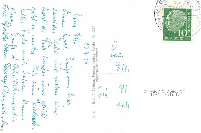 72706571 alte Postkarte Gersfeld Rhoen Marktplatz Sanatorium Jugendherberge Wasserkuppe Schwedenschanze Ludwigstift Freibad Rathaus postalisch gelaufen Erhaltung siehe scans [LiesaD40] KatCode: 11110006631010