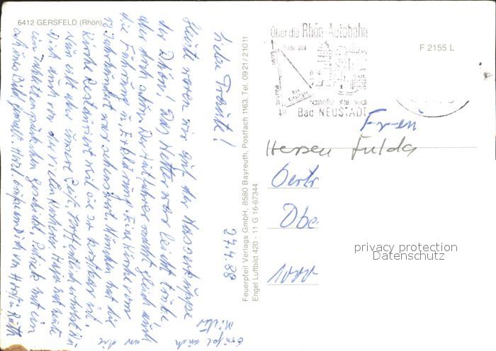 72228067 alte Postkarte Gersfeld Rhoen Milseburg Wasserkuppe Fliegeraufnahme postalisch gelaufen Erhaltung siehe scans KatCode: 11110006631010