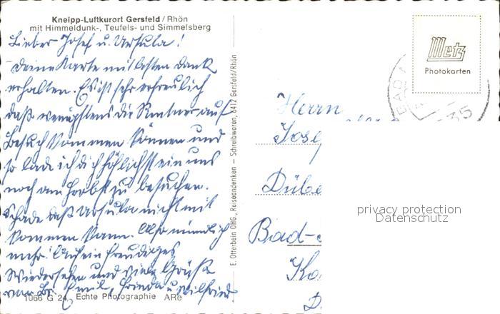 72189085 alte Postkarte Gersfeld Rhoen mit Himmeldunk- Teufels- und Simmelsberg postalisch gelaufen Erhaltung siehe scans KatCode: 11110006631010