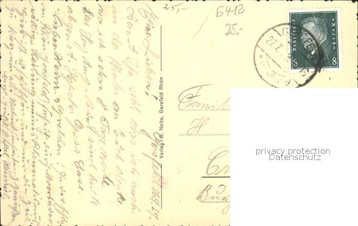 72096954 alte Postkarte Gersfeld Rhoen Ortsansicht postalisch gelaufen Erhaltung siehe scans KatCode: 11110006631010