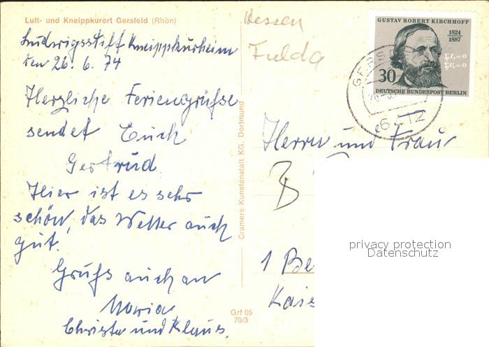 72227678 alte Postkarte Gersfeld Rhoen Panorama Kneipp Luftkurort im Naturpark Rhoen postalisch gelaufen Erhaltung siehe scans KatCode: 11110006631010