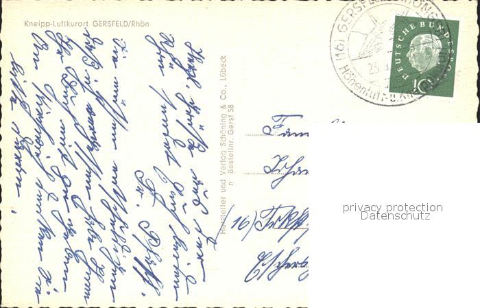 72096958 alte Postkarte Gersfeld Rhoen Panorama Kuranstalt Krankenhaus Marktplatz postalisch gelaufen Erhaltung siehe scans KatCode: 11110006631010