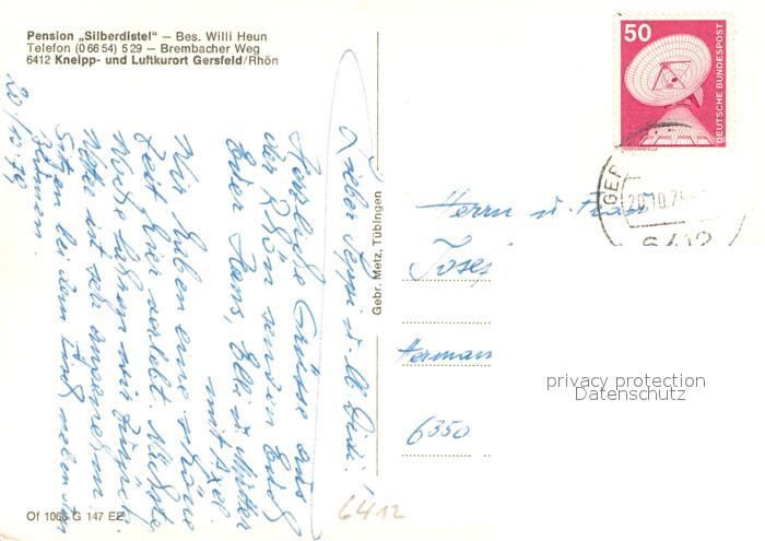 73649241 alte Postkarte Gersfeld Rhoen Pension Silberdistel Gastraum Terrasse postalisch gelaufen Erhaltung siehe scans [FriedD77] KatCode: 11110006631010