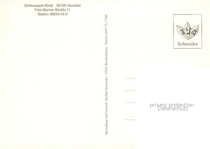 73866166 Gersfeld Rhoen Schlosspark-Klinik postalisch nicht gelaufen Erhaltung siehe scans [FriedD77] KatCode: 11110006631010