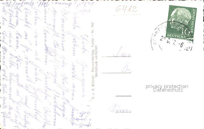 41786134 alte Postkarte Gersfeld Rhoen Schwimmbad Fliegerdenkmal Wasserkuppe Sanatorium Marktplatz Brunnen Totalansicht postalisch gelaufen Erhaltung siehe scans KatCode: 11110006631010