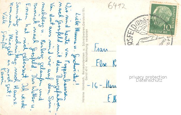 73691923 alte Postkarte Gersfeld Rhoen Stadtbild Kreuzberg Kriegerdenkmal Marktplatz Wasserkuppe Schwimmbad Fuldaquelle Kuranstalt Sportplatz Wachtkueppel postalisch gelaufen Erhaltung siehe scans [WerneD78] KatCode: 11110006631010