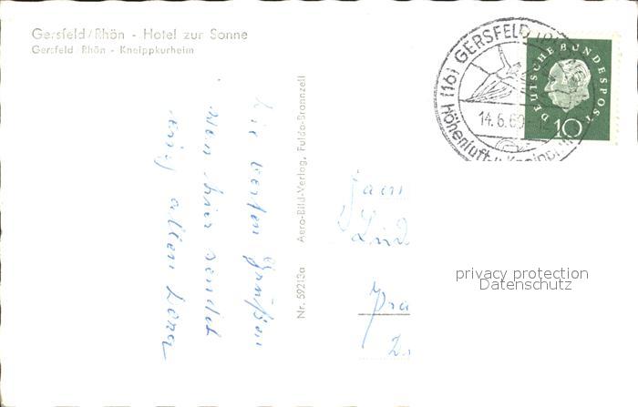 72096964 alte Postkarte Gersfeld Rhoen Totalansicht Hotel zur Sonne Kneippkurheim postalisch gelaufen Erhaltung siehe scans KatCode: 11110006631010