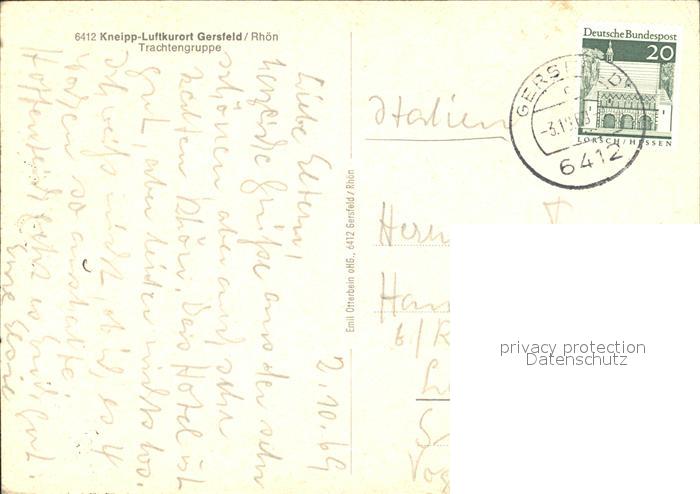 72277247 alte Postkarte Gersfeld Rhoen Trachtengruppe postalisch gelaufen Erhaltung siehe scans KatCode: 11110006631010