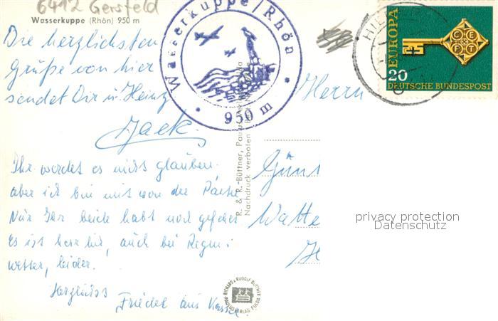 73691900 alte Postkarte Gersfeld Rhoen Wasserkuppe Fliegeraufnahme postalisch gelaufen Erhaltung siehe scans [WerneD78] KatCode: 11110006631010