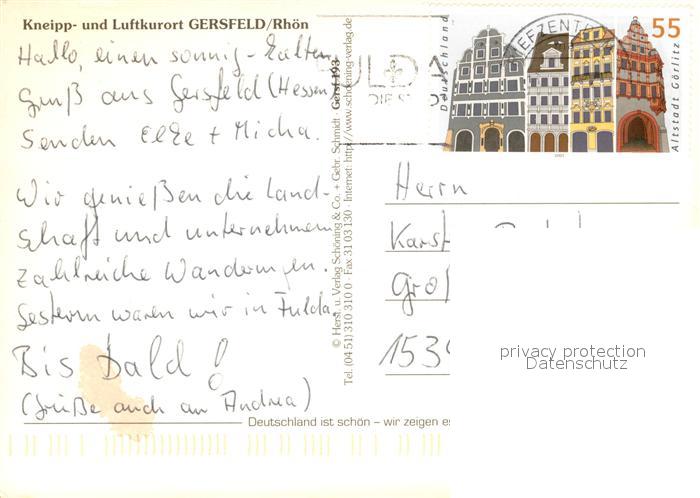 73226333 alte Postkarte Gersfeld Rhoen Wasserkuppe Fliegerdenkmal Rathaus Schloss Segelflugmuseum Kirche Strassencafe Hochwildschutzpark Rodelbahn Gleitschirmflieger postalisch gelaufen Erhaltung siehe scans [FriedD77] KatCode: 11110006631010
